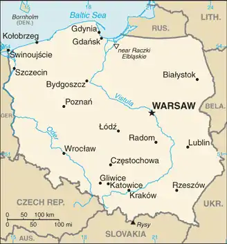 - ↑ US Department of State. 2009. Poland: Country Specific Information "Crime." Website accessed 4/29/2010, http://travel.state.gov/travel/cis_pa_tw/cis/cis_1000.html#crime