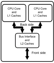 Diagram of a generic dual-core processor with CPU-local level-1 caches and a shared, on-die level-2 cache.