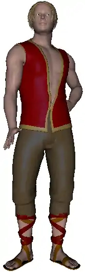 Note: Unlike the the character models mentioned at Rendering models of living organisms, the "Apollo Maximus" model is "anatomically correct". Unless you are making an anatomy lesson, you probably want to keep the penis from being visible. One way to do this is to click on the "Scene" tab, click on the + to the left of the "!ApolloMaximus" element, click on the + to the left of the "hip" element, and keep click on additional + signs until you find the elements called "genital1" to "genital5". Make sure you have the "Content" pane scrolled to show the check boxes along the right side of the pane. For each element of the scene (such as "hip", just to the left of the column of check boxes (see page 165 in the manual) there is a small oval icon like an eye. You can click on these "eyes" to make each element of the model visible or invisible. Note: the "Apollo Maximus" model comes with a preset pose for hiding the genitals.