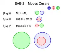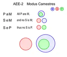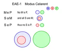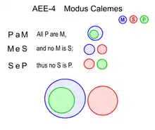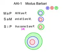 | A: All M are P A: All S are M A: All S are P For Example: All animals are mortal All men are animals All men are mortal | E: No P is M A: All S is M E: No S is P For Example: No reptiles have fur All snakes are reptiles No snakes have fur | I: Some M are P A: All M are S I: Some S are P For Example: Some mugs are beautiful All mugs are useful things Some useful things are beautiful | A: All P are M E: No M are S E: No S are P For Example: All horses have hooves No humans have hooves No humans are horses |