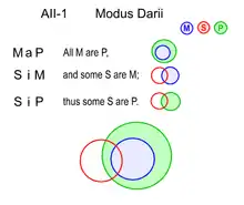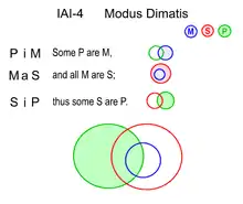 - I – Some S are P (Inclusion – Particular Affirmation, "Some women are philosophers")