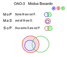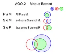 - O – Some S are not P (Other – Particular Negative, "Some women are not philosophers")