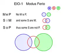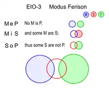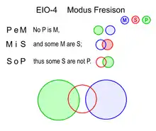 | E: No M are P I: Some S are M O: Some S are not P | A: All P are M O: Some S are not M O: Some S are not P | E: No M are P I: Some M are S O: Some S are not P |