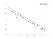 - In the plot we show in red the average errorand in blu the actual error. From the graph, it is clear that the actual error is not a monotone function. Moreover, note that the global behavior of both curves is the same, clarifying the term average error for .