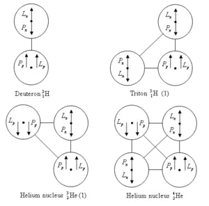 Based on this, the models of triton (tritium nuclei, a heavy isotope of hydrogen) and of other basic nuclei – helium and lithium are built. Spin-spin forces between nucleons in atomic nuclei explain the Pauli exclusion principle, according to which identical fermions that are close, cannot have the same quantum numbers. In particular, spins of identical nucleons in the presented models of atomic nuclei are in opposite directions.