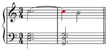 A 4-3 suspension with the suspended note in the melody (top stave)