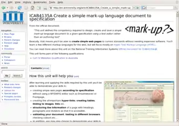 You've been learning HTML and CSS over the past few months by following some online tutorials (such as HTMLDog's tutorials) and applying your learning with exercises (such as the HTML Challenges or CSS challenges) and a small example website about your favourite band that you've created to apply your skills as you learn. You decide to start documenting your evidence for the Australian unit of competence ICAB4135A Create a simple mark-up language document to specification (official document for ICAB4135). On the Evidence Sheet, you list the HTML and CSS Challenges as one piece of evidence, and your small band website as another.