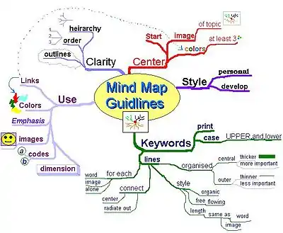 So what's up? Well, this Wikiversity page is all about what Mind Mapping is, what to use it for and how to do it yourself. And it even tells you how to teach it to others. To start out however, you will see why you would be needing Mind Mapping at all and what problems it might solve for you, and of course which it won't.