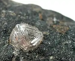 "Occurs in association with graphite, zircon, and rutile in shocked graphite gneisses from Mottingen in the Ries Crater, Germany. Also observed from the Goalpara and Dyalpur carbonaceous chondrites."[1]
