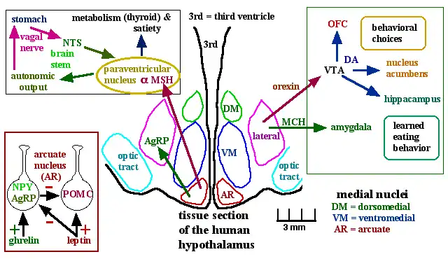 - Human hypothalamus. Chemically defined projections linking the mediobasal hypothalamus and the lateral hypothalamic area by Elias CF, Saper CB, Maratos-Flier E, Tritos NA, Lee C, Kelly J, Tatro JB, Hoffman GE, Ollmann MM, Barsh GS, Sakurai T, Yanagisawa M, Elmquist JK in The Journal of comparative neurology volume 402, pages 442-459 (1998).
