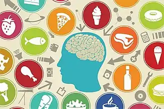 Mindful eating involves non-judgemental awareness of the individual's consciousness with food in the present environment (Framson et al., 2009). This is because it focuses on mindfulness, which is being aware and having a detailed perception to assist individuals to cope with their emotions and physical sensations without judgements (Nelson, 2017). As shown in figure 2, the woman is eating donuts, representing the consumption of food. Mindful eating is also a technique to help individuals gain control over their eating habits, which can help recognise eating disorders, weight loss or gain and binge eating (Bjarnadottir, 2019). This depicts how mindful eating is crucial because the technique provides people with correct information to maintain physical and mental health. Mindful eating has the potential to address and help severe eating disorders and problematic habits (Warren et al., 2017). This represents how implementing mindful eating can positively influence individuals to come to peace with their eating style and alter negative habits to help their lifestyle. Mindful eating is an effective technique to help reduce overeating because it heightens the senses and cognitive awareness of eating in individuals (Engstrom, 2007). This is accomplished by firstly acknowledging if eating is a task, habit or experience, whether hunger is present, the type of food wanted, how it tastes and the texture of the food (Engstrom, 2007). This can identify why overeating occurs, as individuals can become aware of why they are eating too frequently (Engstrom, 2007). Constant eating leads to overconsumption of calories, leading to physical health issues such as obesity and/or mental issues (Engstrom, 2007). Hence the importance of mindful eating because it helps people stay on track of their eating habits and take control of their lifestyle. Figure 3 demonstrates a visual representation of thinking about mindful eating and the thought processes with different food groups.