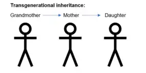 - Intergenerational inheritance involves an environmental stimulus leading to an epigenetic alteration in the parent and, most likely, the offspring of that parent (see Figure 1) (Tuscher & Day, 2019)