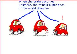 When it comes to instability, emotions often will dominate or cloud the mind's thought patterns. In Figure 1, the brain is illustrated as the physical car, the mechanics which allow the mind to function (i.e. allow the person to subjectively experience the act of driving). In other words the brain gives us the physical structure to allow the mind to operate and experience the world.