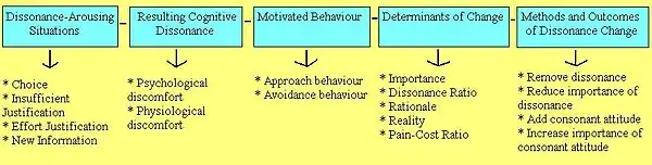 The determinants of approach or avoidance behaviour are governed by magnitudes of dissonance; the quantitative amount of dissonance an individual experiences including importance, dissonance ratio, rationale, reality and pain-cost ratio (Reeve, 2009; West & Turner, 2007). Importance refers to how imperative the issue is to an individual; dissonance ratio defines the number of consonant attitudes relative to the dissonant attitudes; rationale refers to the reasoning exercised to explain the dissonance; reality describes an individual's appraisal of whether attitudinal or behavioural changes are realistic; and the pain-cost ratio simply refers to the amount of pain and costs required to eliminate a dissonance. Therefore, the determinants of change impact on whether an individual displays approach or avoidance behaviours to reduce or eliminate the dissonance.