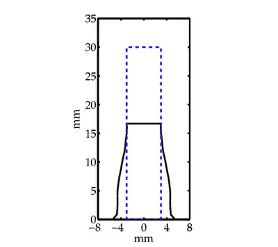 Consider the impact of a cylindrical Taylor impact specimen on a rigid target. The undeformed and deformed profiles of the specimen are shown in in Figure 3.
