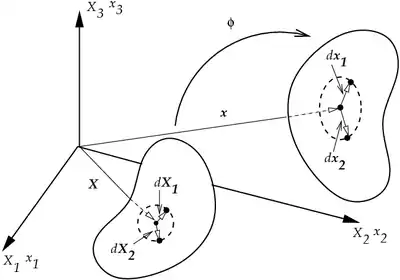 The determinant of the deformation gradient is usually denoted by and is a measure of the change in volume, i.e.,