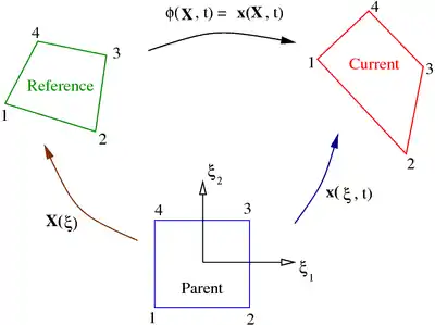 ![]() Maps from parent element to reference and current configurations |