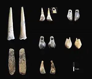 - ↑ Marie Soressi; Shannon P. McPherron; Michel Lenoir; Tamara Dogandžić; Paul Goldberg; Zenobia Jacobs; Yolaine Maigrot; Naomi L. Martisius et al. (27 August 2013). "Neandertals made the first specialized bone tools in Europe". Proceedings of the National Academy of Sciences of the United States of America 110 (35): 14186–14190. doi:10.1073/pnas.1302730110. http://www.pnas.org/content/110/35/14186.short. Retrieved 2017-08-18.