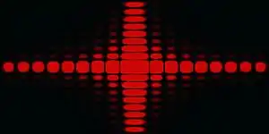 Computer simulation of diffraction by a rectangle. Remarkably, the height of the rectanglular hole is greater than its width.
