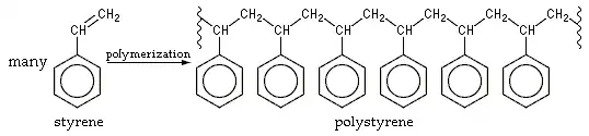 To create polymers from monomers (single units), a chemical reaction called polymerization (linking of monomers) occurs.