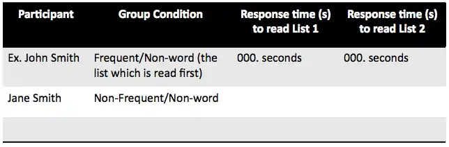 Apparatus Required: a stopwatch, one frequent/non-word list, and one non-frequent/non-word list (further described below).