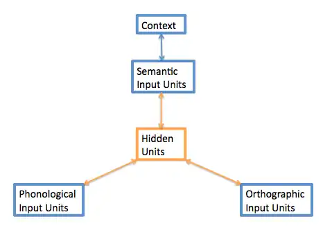 “Knowledge of words is embedded in a set of weights on connections between processing units encoding orthographic, phonological, and semantic properties of words, and the correlations between these properties” (Seidenberg & McClelland, 1989, p. 560).