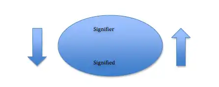 The above diagram demonstrates the relationship between signifier and signified. You can see how they are both integral parts of the sign (represented by the oval containing both signifier and signified), and also how this relationship works in both directions. Awareness of one part of the sign entails knowledge of the other part.