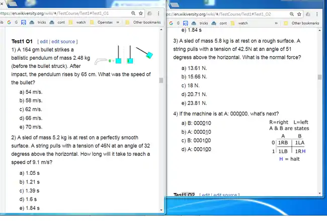 Quizbank[1] is a collection of conceptual and numerical quizzes that serve a dual purpose: (1) They can be used online by students for practice; and (2) a Python code can turn them into in-class multiple choice quizzes and exams. Quizbank is used for all the exams that User:Guy vandegrift teaches at Wright State University Lake Campus. A study guide posted on Wikiversity shows students how many questions from each exam will be randomly selected from each quiz.[2] For a sample study guide, see Wright State University Lake Campus/2016-9/Phy1050/Study guide