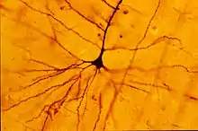 About a decade after Broca's area was recognized as a movement control area of the brain, Vladimir Betz used a new technique, the Golgi stain, to identify a type of giant pyramidal shaped cells that are movement control cells of the brain. These "Betz cells" are among the largest neurons of the human brain and they are depleted from the brains of patients with Lou Gehrig's disease.