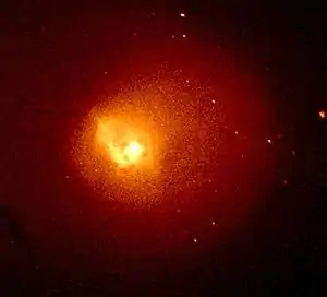 Abell 2029 or A2029 is a large galaxy cluster 315 megaparsecs (1.027 billion light-years) away in the constellation Virgo.[27] A2029 is a Bautz–Morgan classification type I cluster due to its large central galaxy, IC 1101.