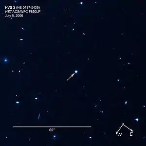 - ↑ Simbad. "[BGK2006] HV 1 -- High-velocity Star". Strasbourg, France: Université de Strasbourg/CNRS. Retrieved 8 June 2019.