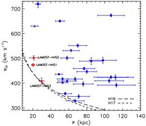 - 1 2 3 4 5 Y. Huang, X.-W. Liu, H.-W. Zhang, B.-Q. Chen, M.-S. Xiang, C. Wang, H.-B. Yuan, Z.-J. Tian, Y.-B. Li, and B. Wang (21 September 2017). "Discovery of Two New Hypervelocity Stars from the LAMOST Spectroscopic Surveys". The Astrophysical Journal Letters 847 (1). https://arxiv.org/pdf/1708.08602. Retrieved 7 June 2019.
