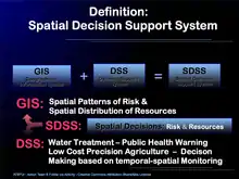 Objective: Combine economical benefit of less application of agrochemical with less exposure to agraochemicals to humans and environment especially in areas with hard manual farm work (see La Isla Foundation[5] and One Health) - OER by Felix Kullmann. - Standardization of Spatial Decision Support Layers: Provides a step-by-step learning process for standards between mathematical requirements, computer science modelling and source data in a Wikipedia:Geographic Informations System