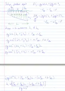 h1=2*((L*F1+L*F2)-a*F1-b*F2)/(rho*g*W*L**2)