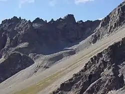 The black glacier in the Horcones Inferior Valley, Aconcagua Provincial Park, Argentina, imaged on the right, is a rock glacier.