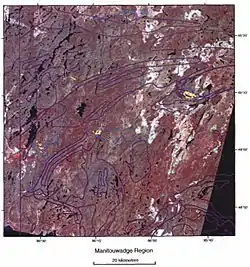 - ↑ I.M. Kettles; A.N. Rencz; S.D. Bauke (April 2000). "Integrating Landsat, Geologic, and Airborne Gamma Ray Data as an Aid to Surficial Geology Mapping and Mineral Exploration in the Manitouwadge Area, Ontario". Photogrammetric Engineering & Remote Sensing 66 (4): 437-45. http://asprs.org/a/publications/pers/2000journal/april/2000_apr_437-445.pdf. Retrieved 2014-10-28.