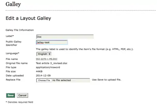 Repeat the Galley upload process. Ensure the Public Galley Identifier Field is labelled as 'PDF'.