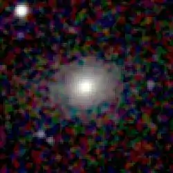 The image on the right is of NGC 1 in the near-infrared J, H, and K bands. It is a distant spiral galaxy.