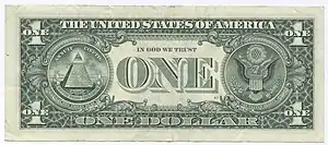 The reverse of the one dollar bill has an ornate design which incorporates the Great Seal of the United States, and it is of noted interest to historians and numerologists for the symbols contained therein.