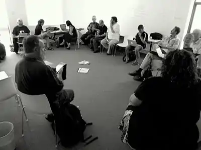 ![]() ![]() Group photo at sunset BBQ by the lake RecentChangesCamp2011 was an OpenSpace unconference focused on wikis and online collaborative practices. RCC2011 was organised by University of Canberra staff in National Institute of Sport Studies (UCNISS), following the success of the RCC2010 event, and RecentChangesCamps held in other parts of the world. The main characteristics of the event were that it was free to attend, open to anyone, with a program determined on the day by the participants. The aim of the event was to draw together people interested in worldwide iterative knowledge involvement or wikis, to discuss and share knowledge, and eat and socialise in a friendly face to face setting. Participants