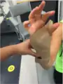 • Whilst the plastic is softening, prepare your client by positioning them with elbow support, neutral forearm and wrist and a slightly opposed thumb