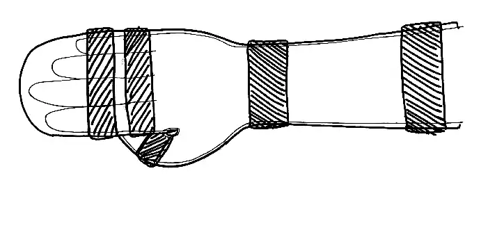 • Velcro straps that are 4cm in width are attached slightly distal to the proximal edge of the device and at the wrist