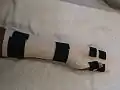 • 2.5cm permanent Velcro straps over the proximal phalanges and medial phalange of the 2nd to 5th digits.