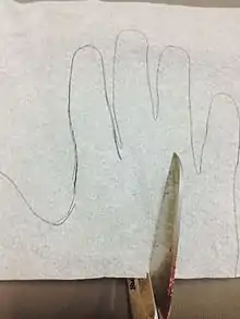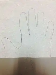 - • Have the patient’s hands placed on a piece of paper and draw around it to get the correct measurements (Fig 2)