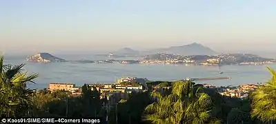 Monte di Procida in the fourth image down on the right is a volcanic remnant of Campi Flegrei.