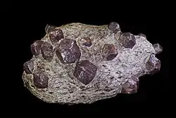 {{free media}}"Almandine garnet-bearing andesites and dacites occur frequently in the Neogene calc-alkaline volcanic series of the northern Pannonian Basin (Hungary and Slovakia)."[14]