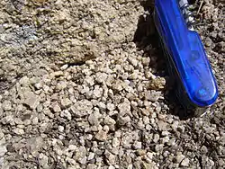 {{free media}}On the right is a granitoid, albeit weathered, with the grus sand below that resulted from the weathering.