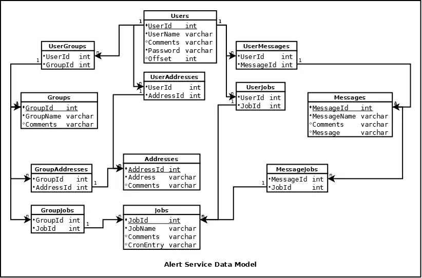 The diagram below shows all Alert Service tables.