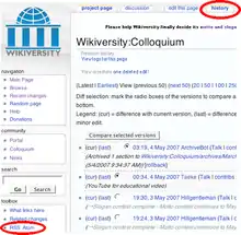 Web feeds can be obtained for changes to individual Wikiversity pages by clicking on the "history" tab (see Figure 2).