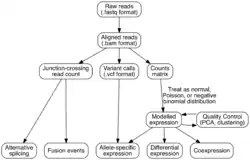 - Count-based (also event-based, differential splicing): estimate exon retention. Examples are DEXSeq,[115], MATS[116], and SeqGSEA[117].